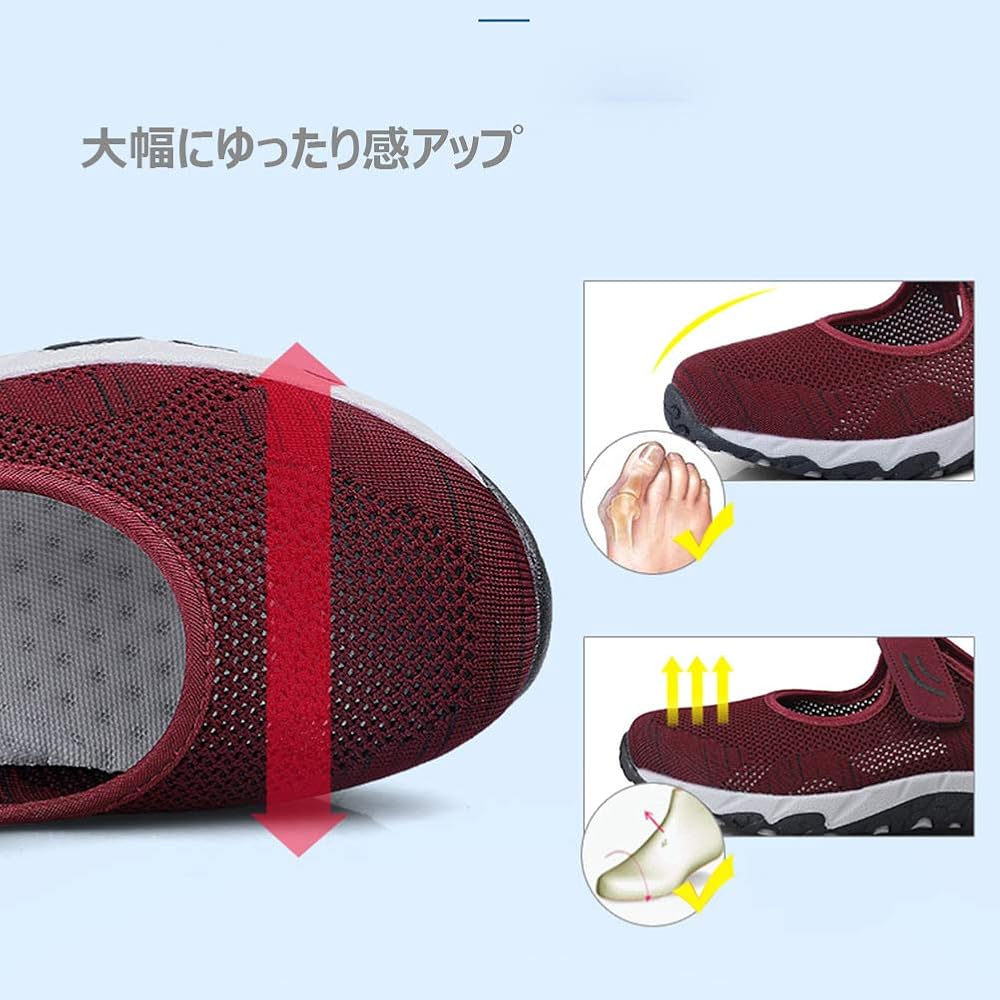 Amazon クイブー レディース メンズ カップル 超軽量 通気 速乾 柔らか 疲れにくい 弾性メッシュ Pu マジックテープ付き アウトドア インソールスリッポン 船型底 スニーカー カジュアル ランニングシューズ Kuibu クイブー ウォーキング